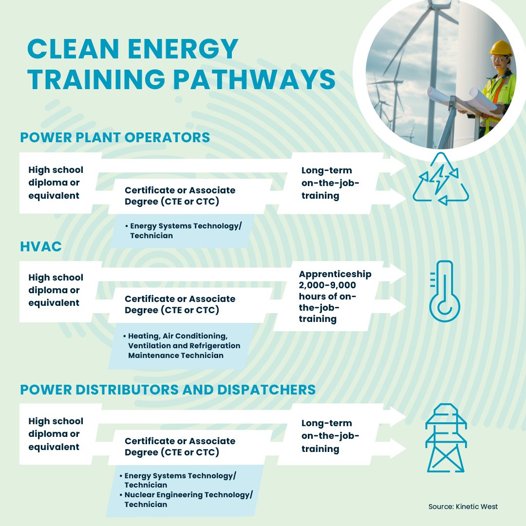 🔹 Explore education and training pathways that lead to a career in clean energy.
